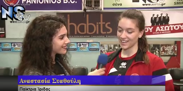 Η Εύη Μυγδάλη, Παίχτρια της Ίριδας, ήταν πολύ χαρούμενη για την απόδοση της ομάδας της. Θα ήθελε να έπαιζαν έτσι και στα προηγούμενα παιχνίδια, ώστε να μην κινδύνευαν να πέσουν κατηγορία. Έδωσε συγχαρητήρια σε όλες τις συμπαίχτριες της και ευχαρίστησε τον προπονητή και την διοίκηση. Εξίσου χαρούμενη ήταν και η συμπαίχτρια της Αναστασία Σταθούλη που έπαιξαν τόσο καλά. Δήλωσε ότι πιθανών η ομάδα να πάει στα play out στην προσπάθεια της να μείνει στην κατηγορία.