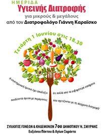 Πρόσκληση σε Ημερίδα Υγιεινής Διατροφής στο 7ο Δημοτικό Νέας Σμύρνης