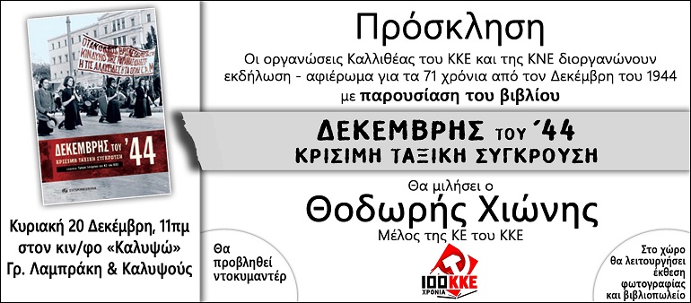 Πρόσκληση στην εκδήλωση για τα 71 χρόνια από τον Δεκέμβρη του 1944